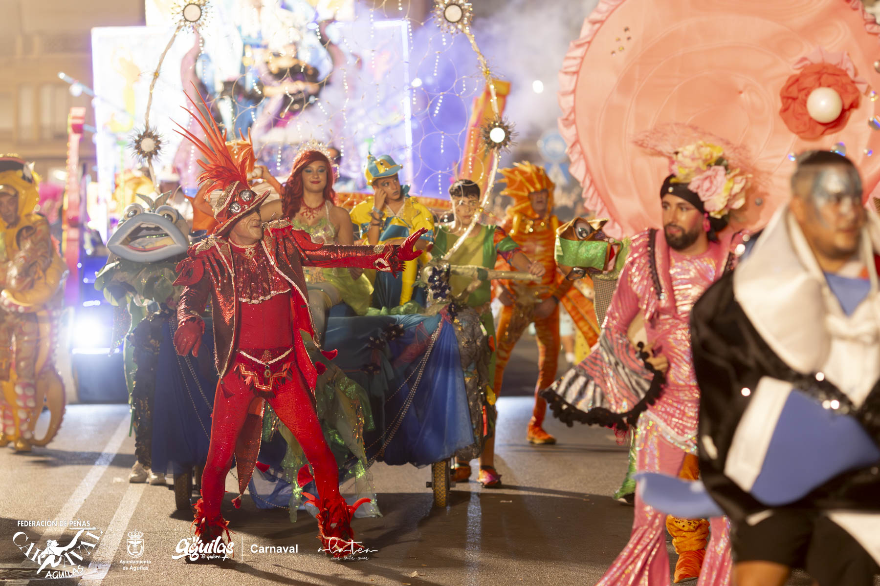 Generalmente, las peñas que desfilan en verano suelen ser las peñas que han obtenido algún premio en el carnaval anterior, ya que el desfile es una muestra de lo que nos podemos encontrar en febrero. Y sirve así como reclamo turístico para las fechas de carnaval, aprovechando la gran afluencia de turistas que presenta la localidad de Águilas en verano.