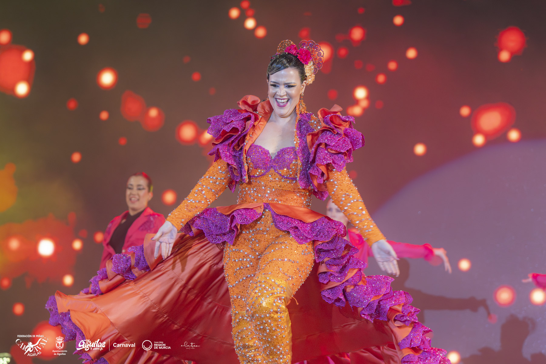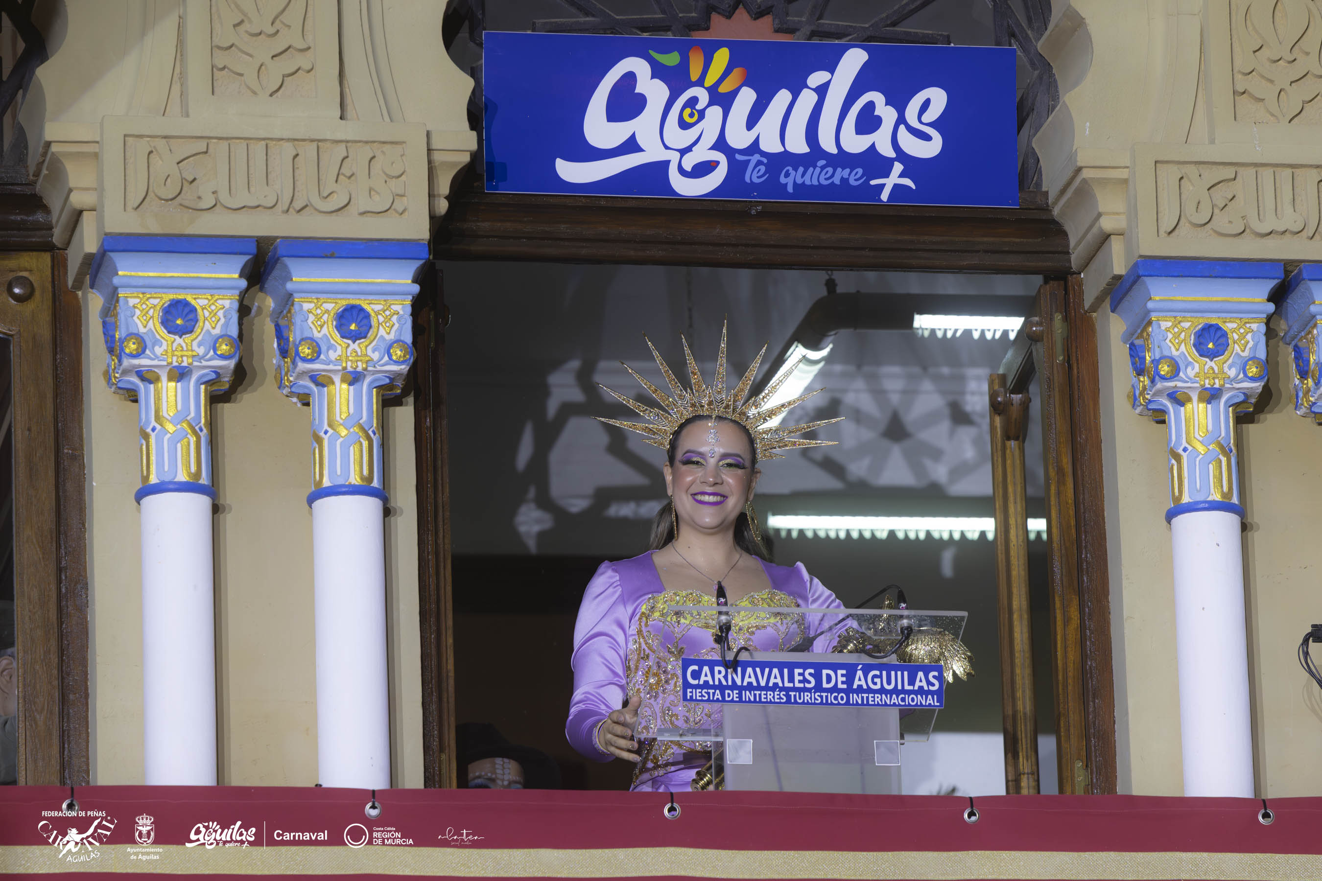 La Musa representa el espítritu carnavalero que llena de colorido, belleza, elegancia y fantasía la ciudad durante los días de Carnaval y la que inspira ese ingenio y humor que todos los años los aguileños muestran al mundo.