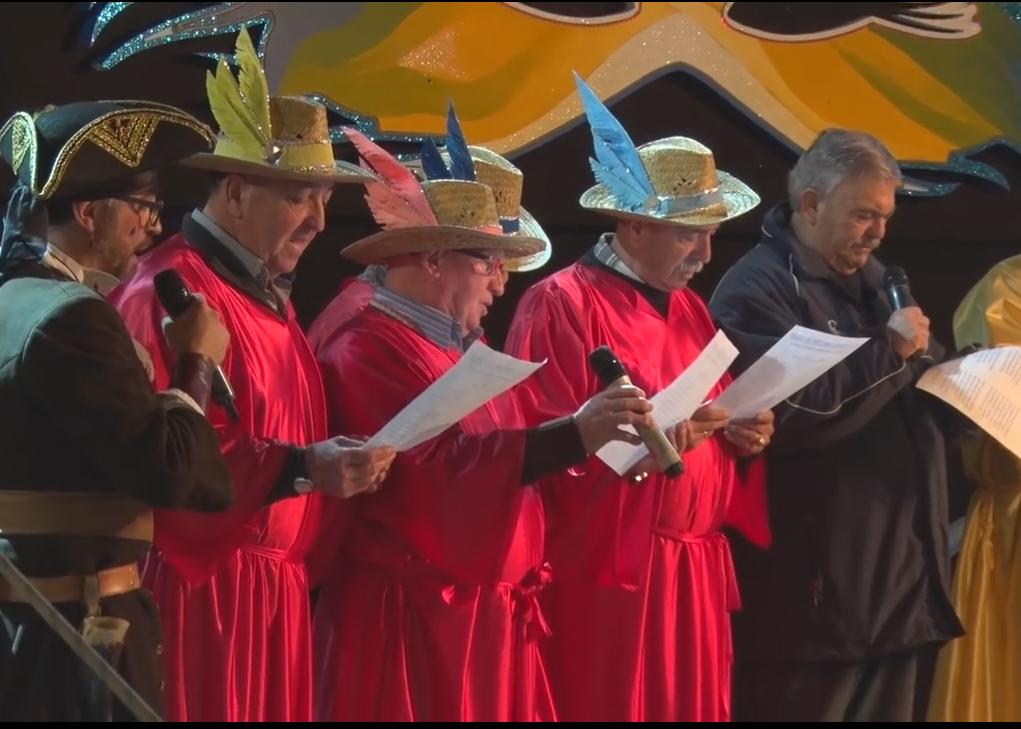 Y para finalizar la noche Mara Blazquez, Doña Cuaresma, y Juan Carlos Silvestre, Don Carnal, que disputaron una batalla de cascarones al grito de ¡Abajo la Cuaresma, arriba Don Carnal!