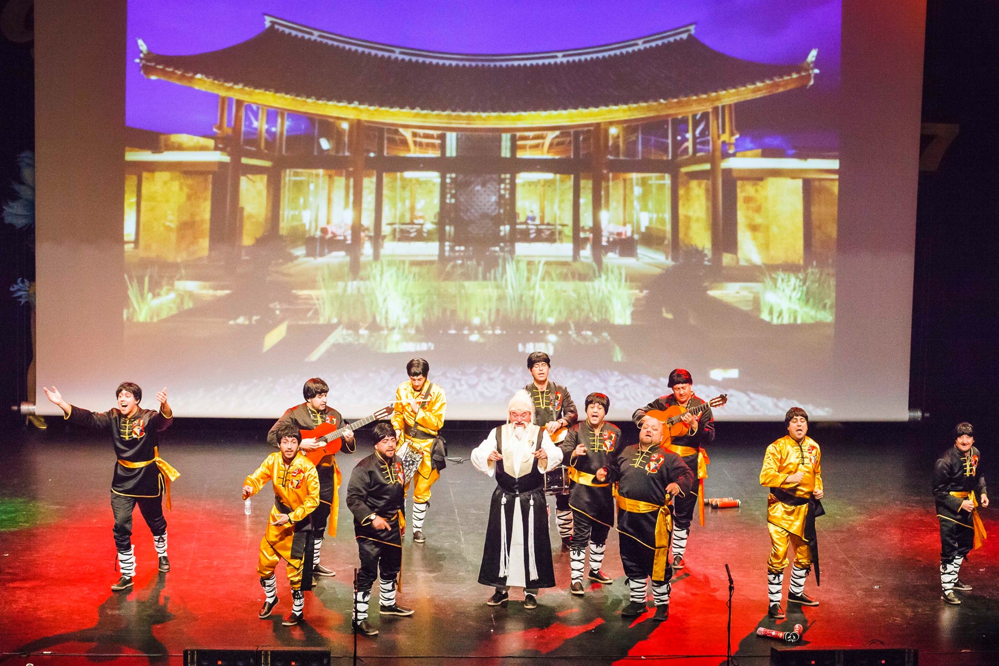 La formación femenina "Las que se despiden", procedente de Cartagena, fue la primera en subir al escenario. Le siguieron "Esta noche carricoche" de Albox, "Los que se las dan de comparsistas" también de Cartagena, y finalmente la gaditana chirigota del Sheriff con la actuación "Los kunfundíos". El broche de oro de la noche fue la actuación conjunta de todos los chirigoteros que lograron poner en pie al público entonando todos al unísono “Loquito por verte a mi vera”.