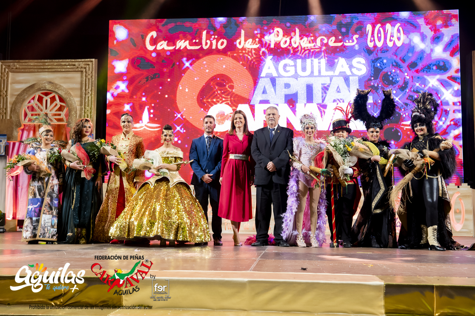 Presentada magistralmente por Mara Blazquez y Juan Carlos Silvestre, la Gala de Cambio de Poderes, pistoletazo oficial del Carnaval, transformó el pabellón Diego Calvo del Polideportivo Municipal en el espectacular escenario de las mil y una noches. Sobre el escenario el Ballet Oficial de la Federación de Peñas de Carnaval fue el encargado de comenzar a calentar los motores de una noche cargada de la magia y el entusiasmo propios del Carnaval. Pasadas las nueve de la noche, los cuatro personajes infantiles recibian "sus poderes" de sus antecesores en el cargo en un acto que sirvió también para rendir homenaje a la peña Toscana por sus diez años en el Carnaval y a la asociación de Amigos del Ferrocarril El Labradorcico que este año han recibido la Caracola de Oro del Carnaval por su contribución a la difusión de nuestra fiesta.