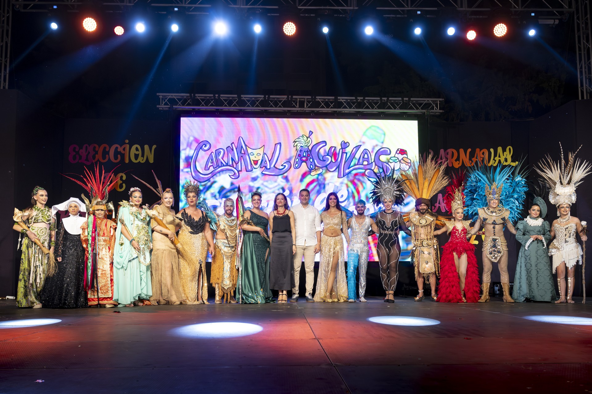 El multitudinario evento comenzó con las actuaciones, siempre fabulosas, del Ballet Oficial de la Federación de Peñas de Carnaval, tras la que dieron comienzo las distintas puestas en escena de los distintos candidatos a representar a los personajes del Carnaval 2026. Los afortunados fueron: